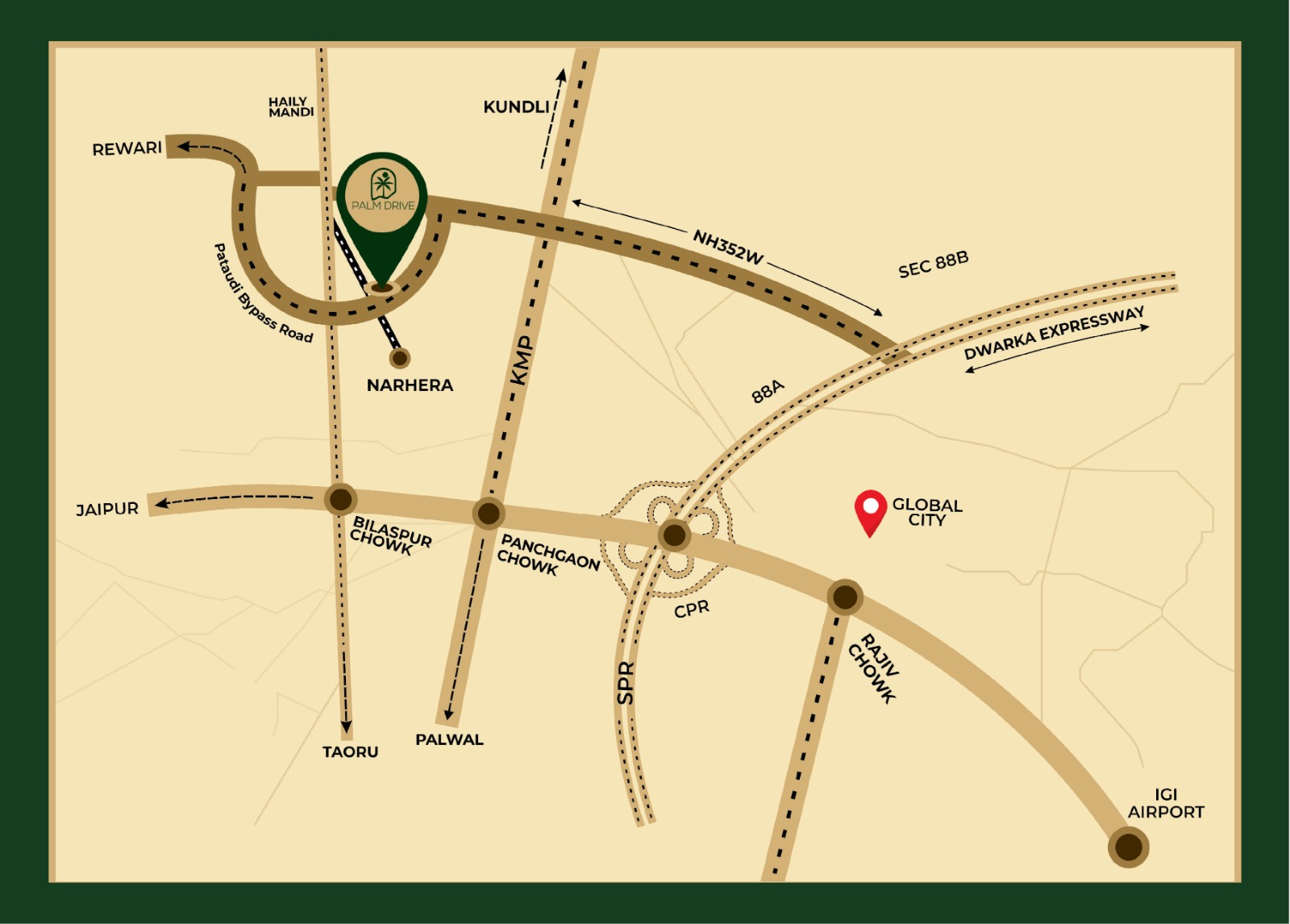 Build your dream home on premium yet affordable plots under DDJAY. Spacious layouts, well-marked boundaries and excellent road access. Each plot at Palm Drive comes with the assurance of smart planning, legal clarity and a clear title. Whether you're building your forever home or securing a tangible asset for tomorrow, these plots provide flexibility, freedom and future potential. With ample green buffers, internal road connectivity and access to all township amenities, these plots ensure that your lifestyle matches your aspirations.